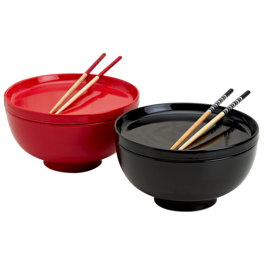8-Piece Red & Black Ramen Bowl Set with Chopsticks & Trivets/Lids